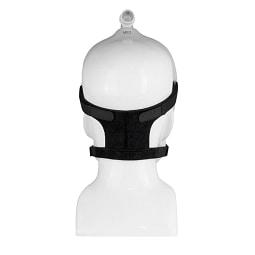 Muito parecida com as versões de almofadas nasais e máscara nasal, o DreamWear Full Face é projetada para minimizar os pontos de contato no rosto. A máscara só entra em contato com rosto através da almofada facial, enquanto a armação percorre as laterais da face até o topo da cabeça, onde o cotovelo se conecta à mangueira do CPAP.