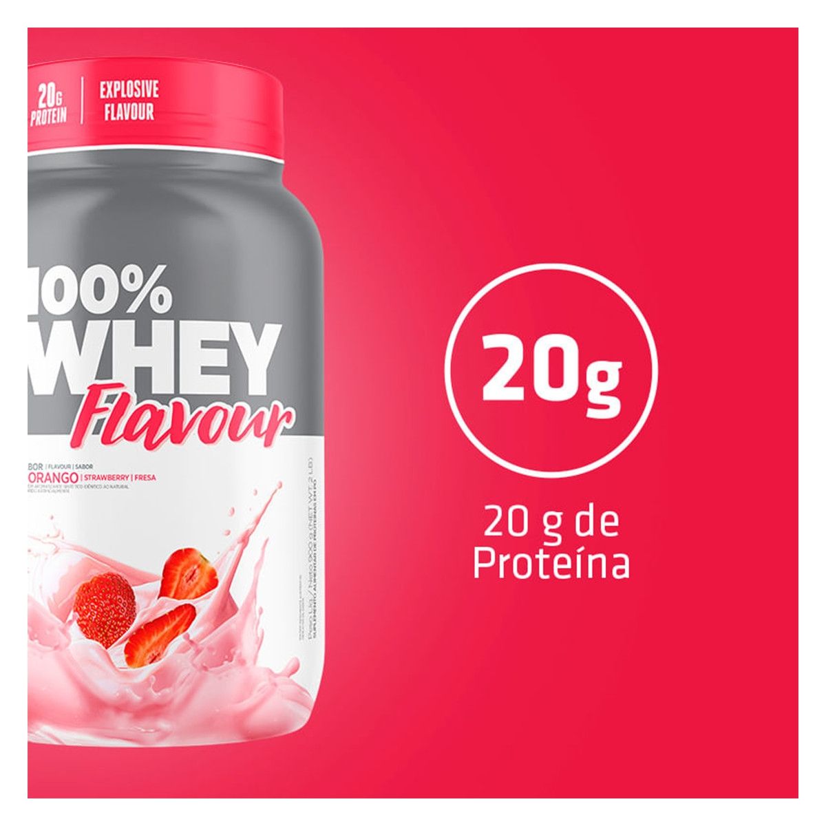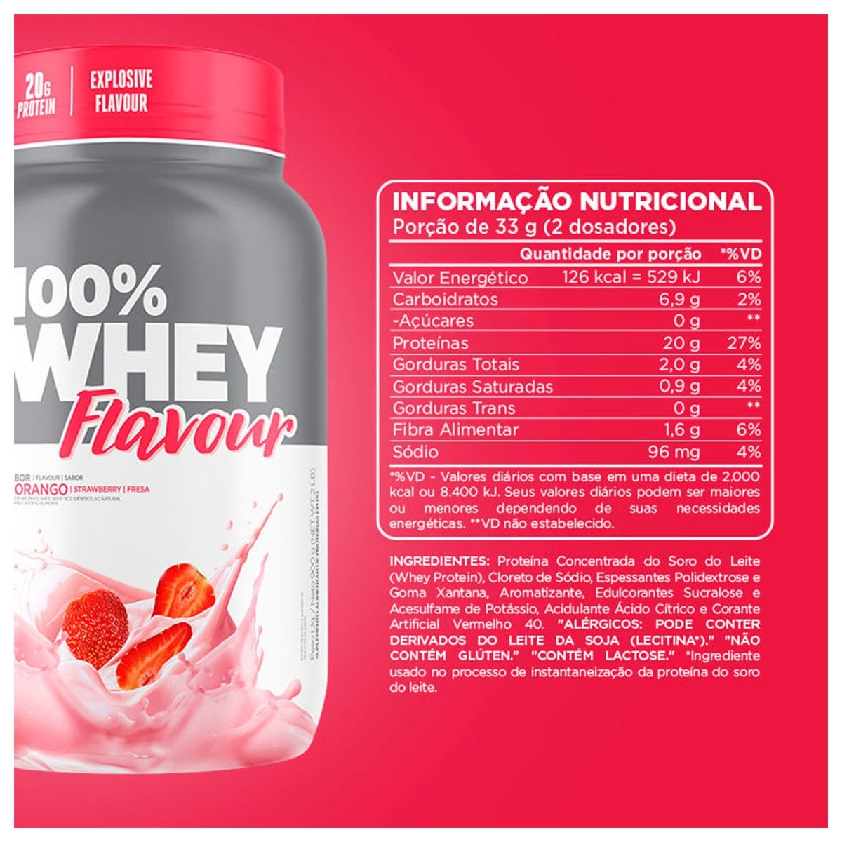 Qual é a quantidade de proteína presente no 100% Whey Flavour Morango?