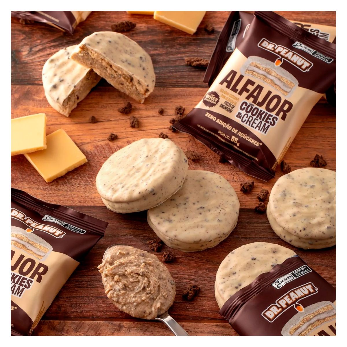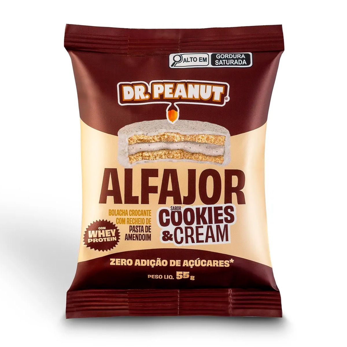Alfajor Com Whey e Pasta de Amendoim Sabor Cookies e Cream 55G Dr Peanut