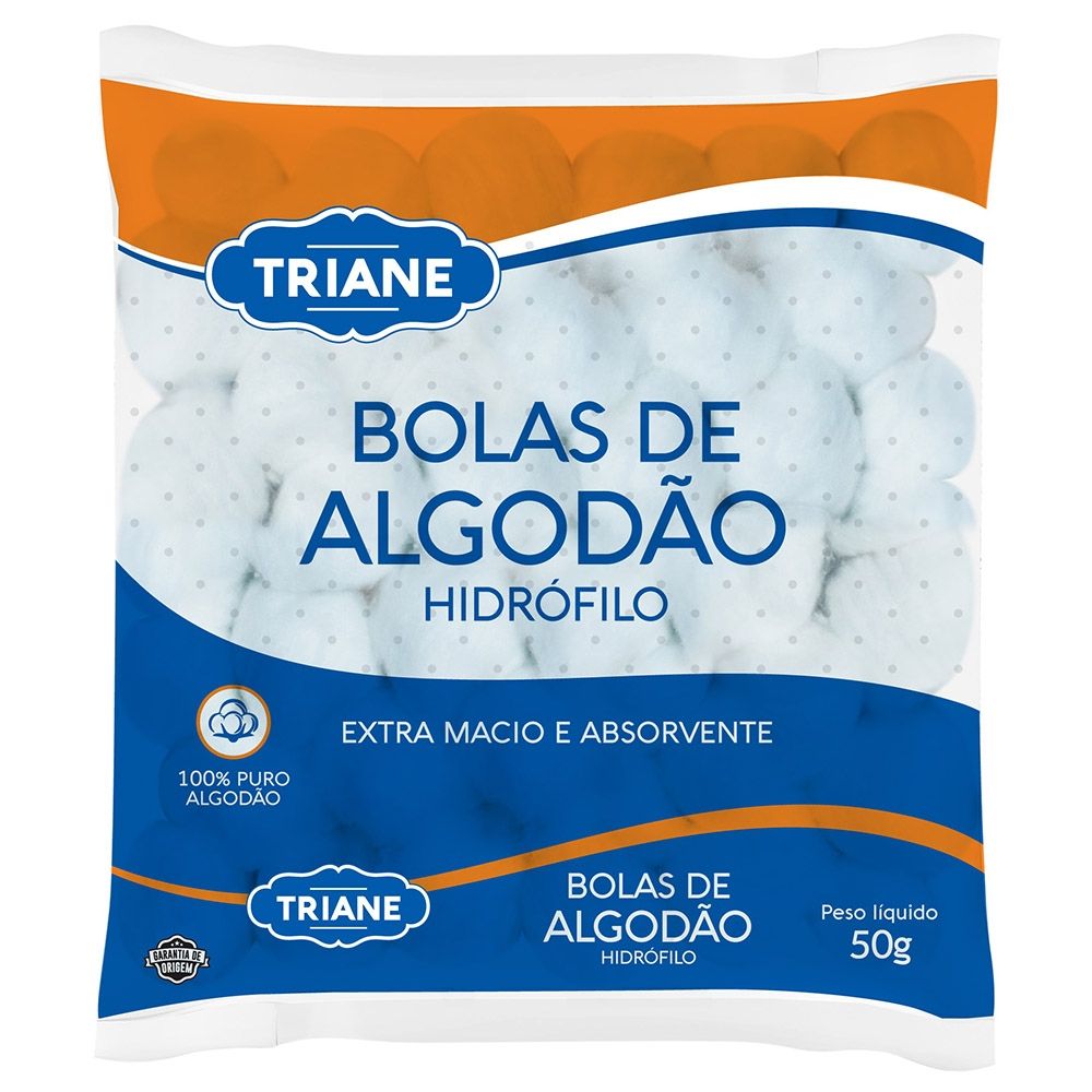 O Algodão Bola 50g Triane é ultra macio e altamente absorvente, ideal para remoção de maquiagem, esmalte e cuidados delicados com a pele do bebê. -