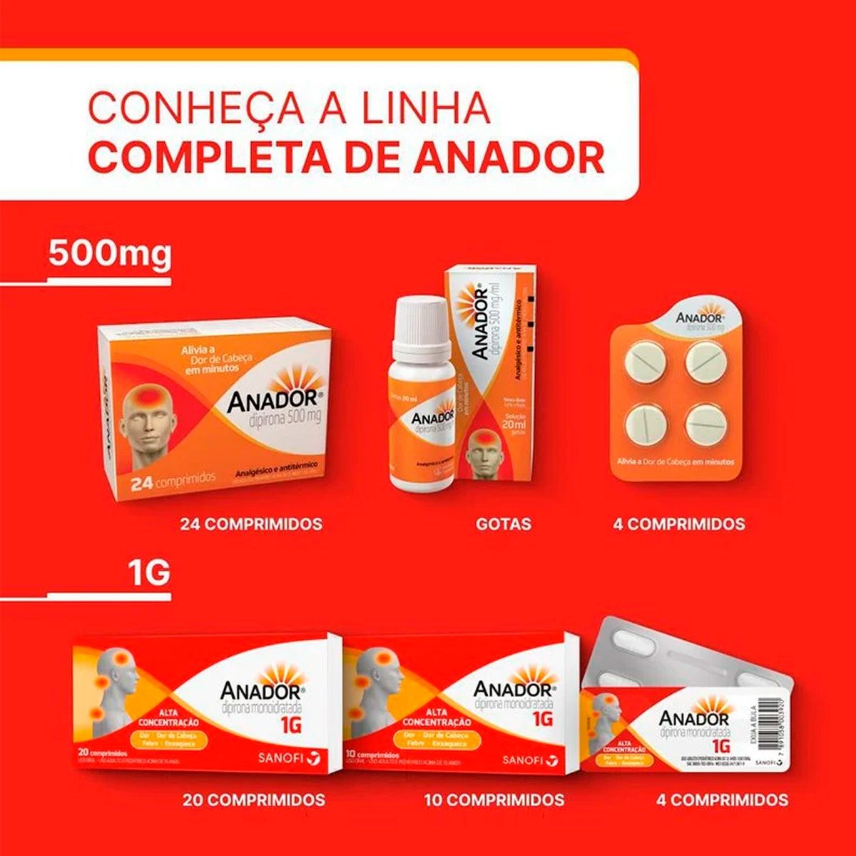 O Anador 1g alivia dores rapidamente e reduz febre com eficácia, proporcionando conforto em situações de mal-estar. -