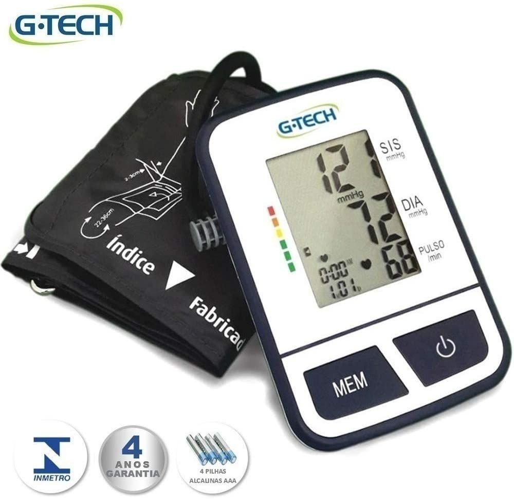 O aparelho de pressão automático digital G-Tech é ideal para o aferimento da pressão arterial . Além das medições tradicionais de pressão arterial e frequência cardíaca, apresenta outros benefícios, como memória para 120 resultados, indicador de arritmia cardíaca, indicador gráfico de nível de hipertensão e o cálculo da média automática das três últimas medições, garantindo o acompanhamento completo dos níveis de pressão arterial.