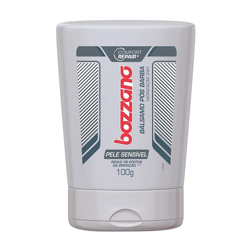 O Bálsamo Pós-Barba Bozzano é indicado para pele sensível, oferecendo cuidado especial após o barbear. -