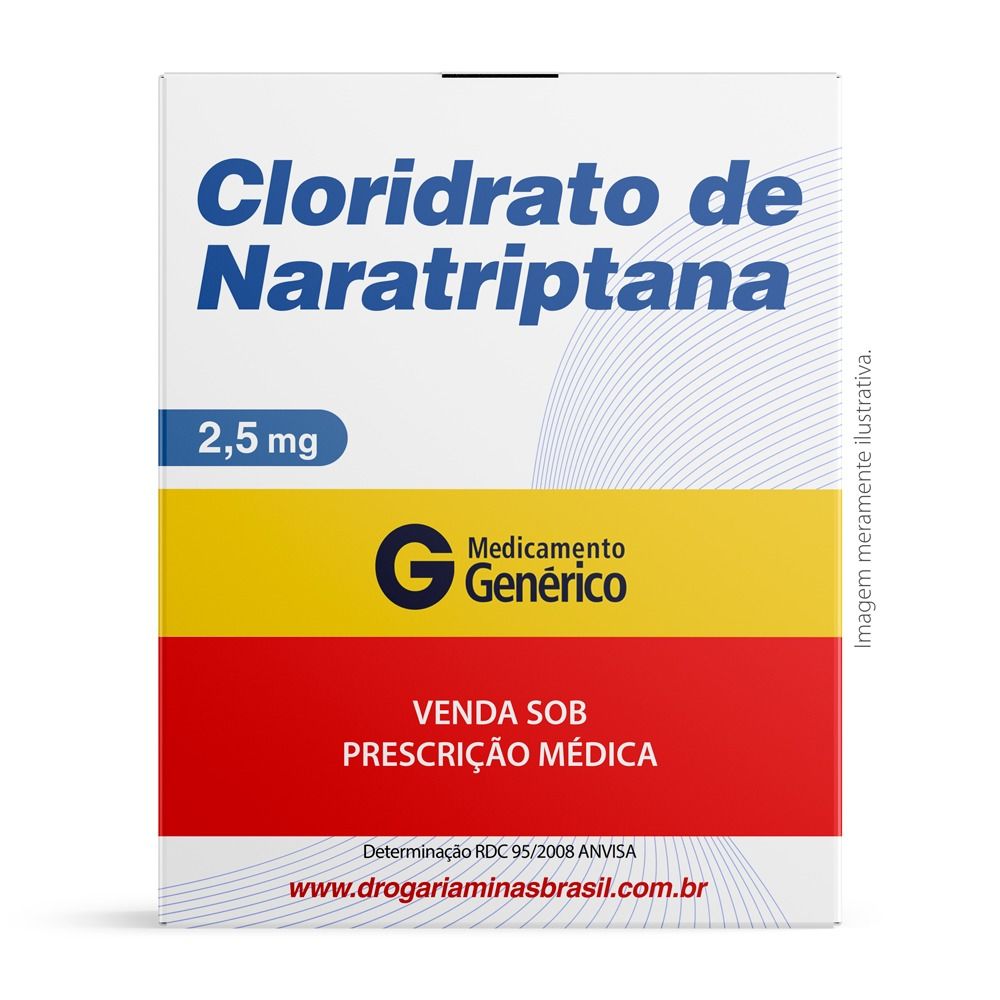Cloridrato de naratriptana 2,5mg. Contém 2, 4, 6, 10, 12 e 20 comprimidos revestidos.