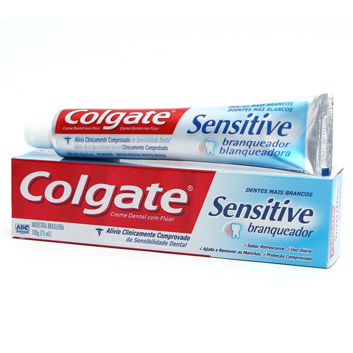 Descubra o "Creme Dental Colgate Sensitive Branqueador 100g"! Oferece alívio da sensibilidade, dentes mais brancos e combate ao tártaro, com uso diário seguro e sabor refrescante de menta. Escolha ideal para quem busca saúde bucal completa.