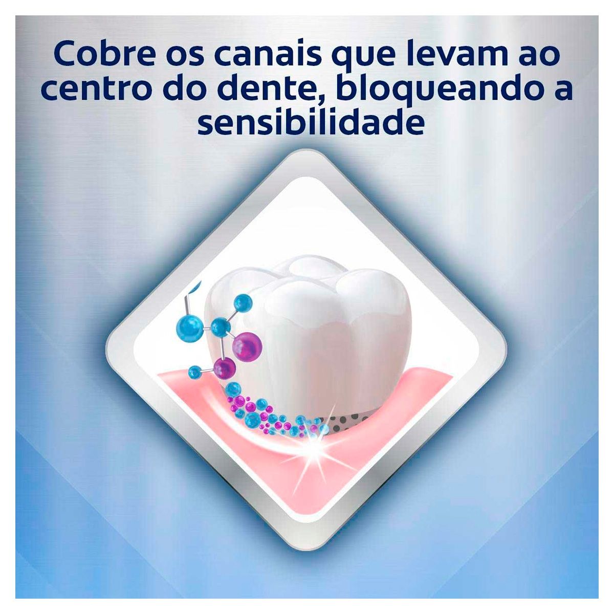 É uma pasta de dente desenvolvida para aliviar a sensibilidade dentária, bloqueando a dor através da vedação dos canais que levam ao centro do dente. -