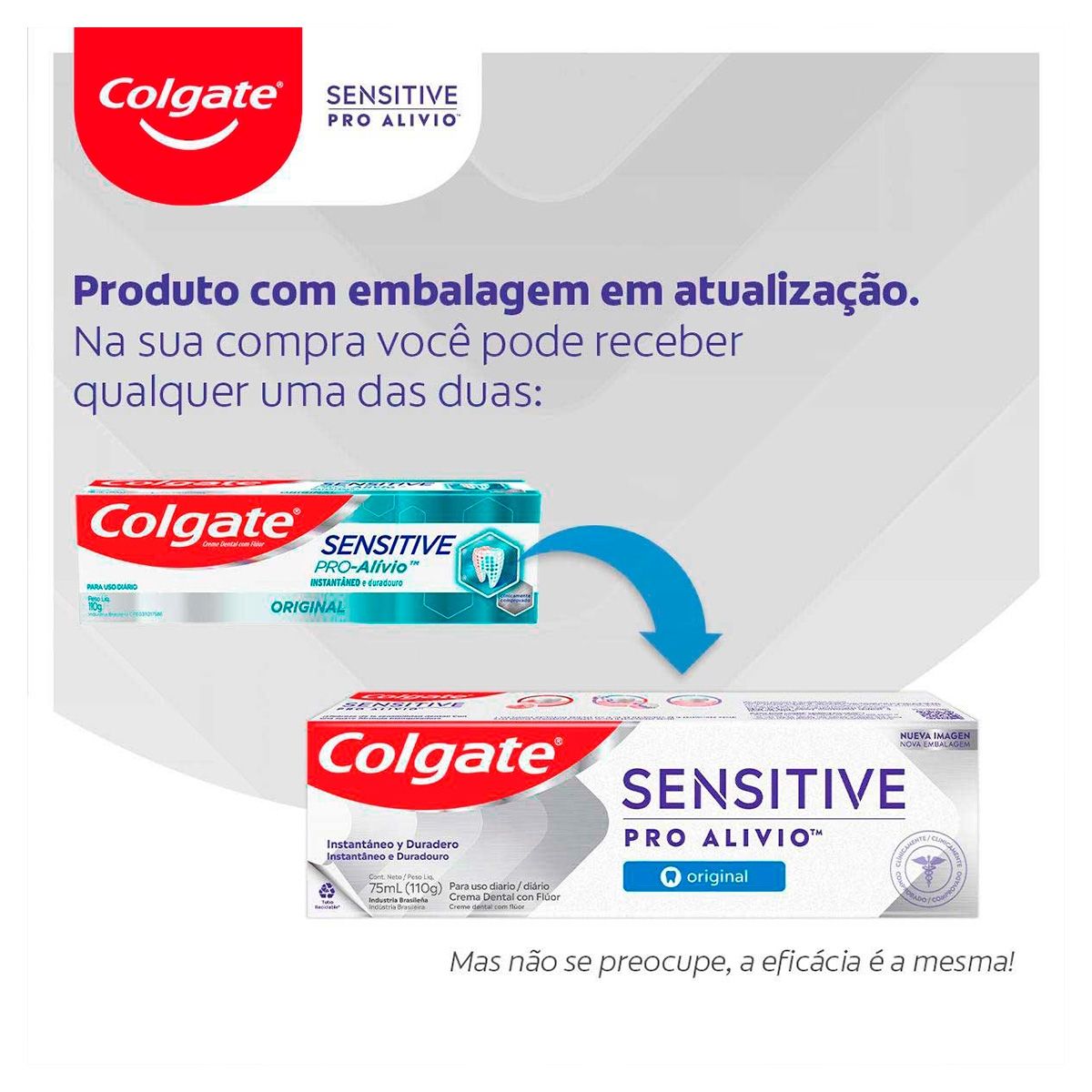 Colgate Sensitive Pro-Alívio conta com a tecnologia Pro-ArginTM, uma combinação de arginina com o carbonato de cálcio, que cria uma camada rica em cálcio na superfície do dente e em seu interior, selando-o e proporcionando alívio instantâneo e duradouro. Resultado clinicamente comprovado com o uso frequente.