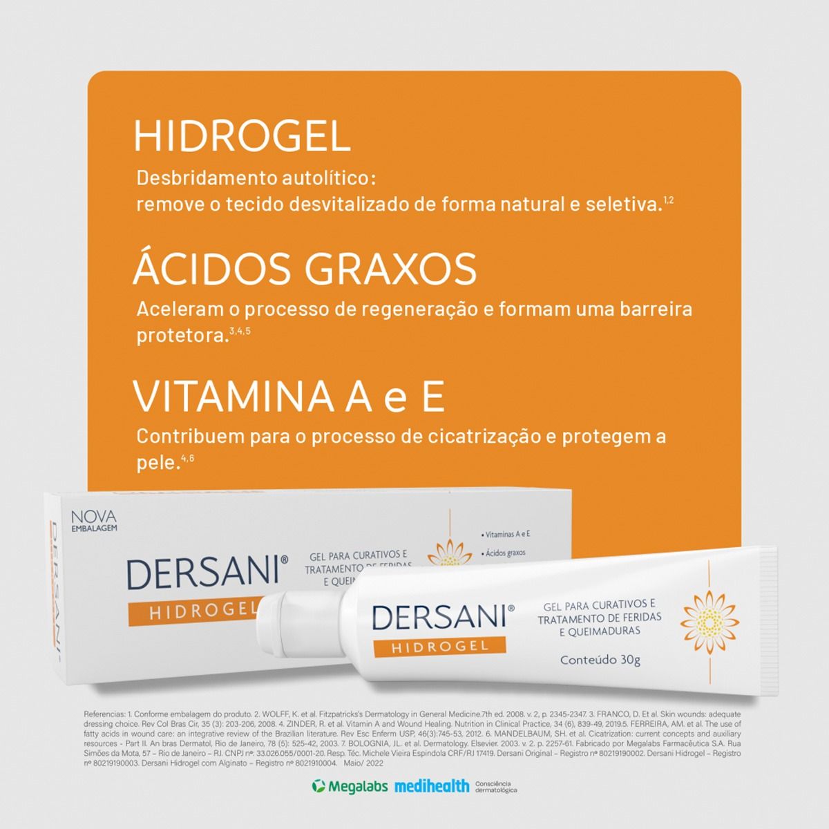 O Dersani Hidrogel 30G promove hidratação e cicatrização de feridas secas, queimaduras e úlceras, proporcionando um ambiente úmido ideal. -