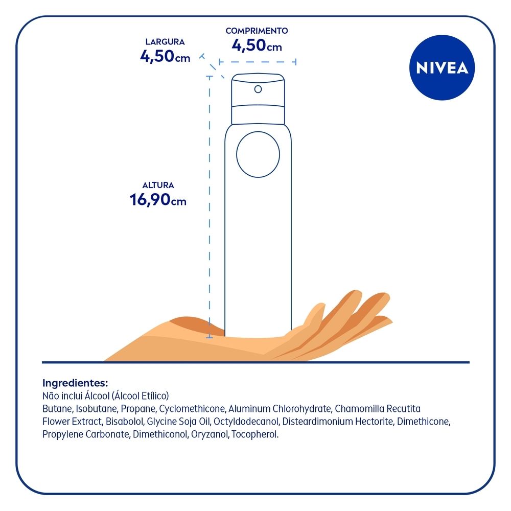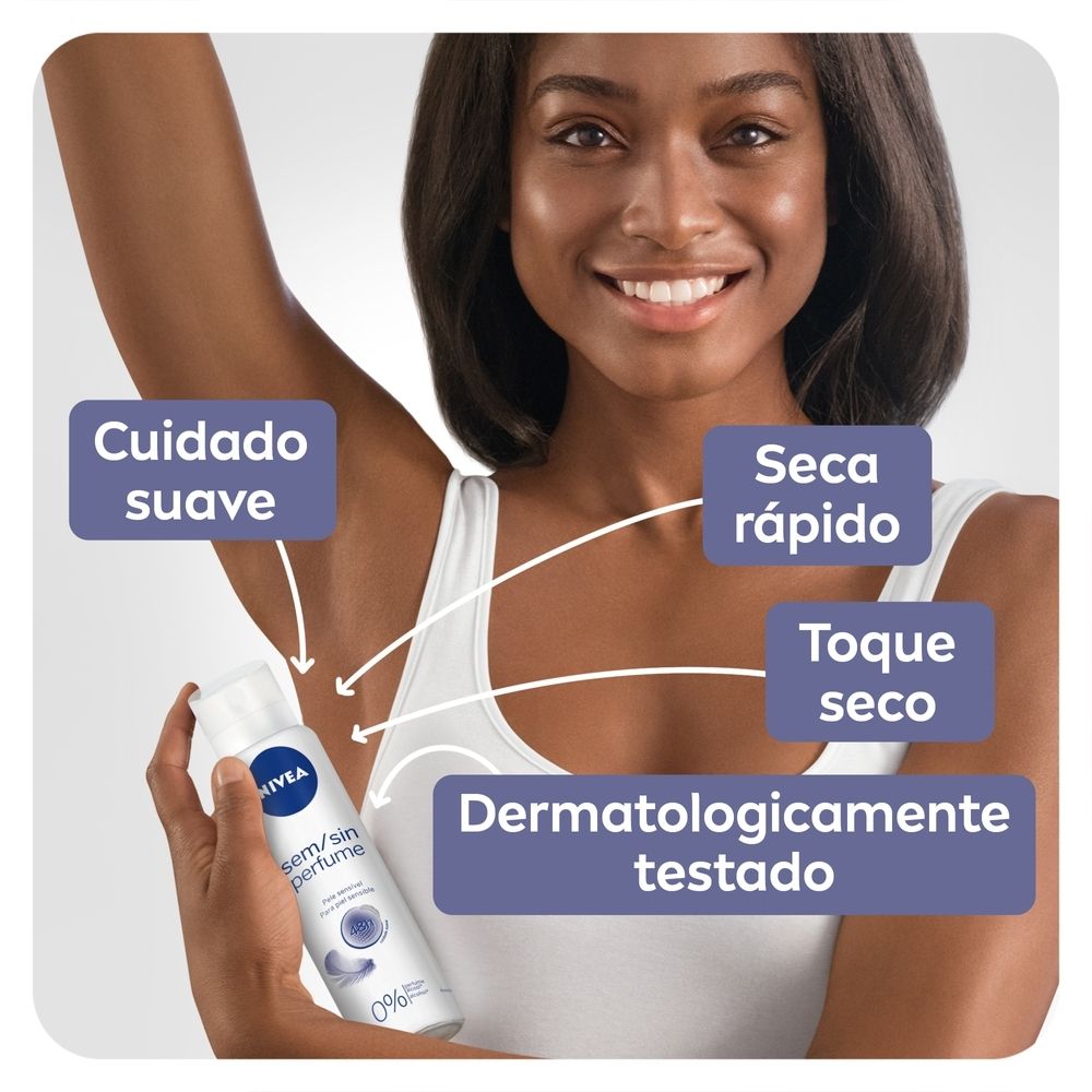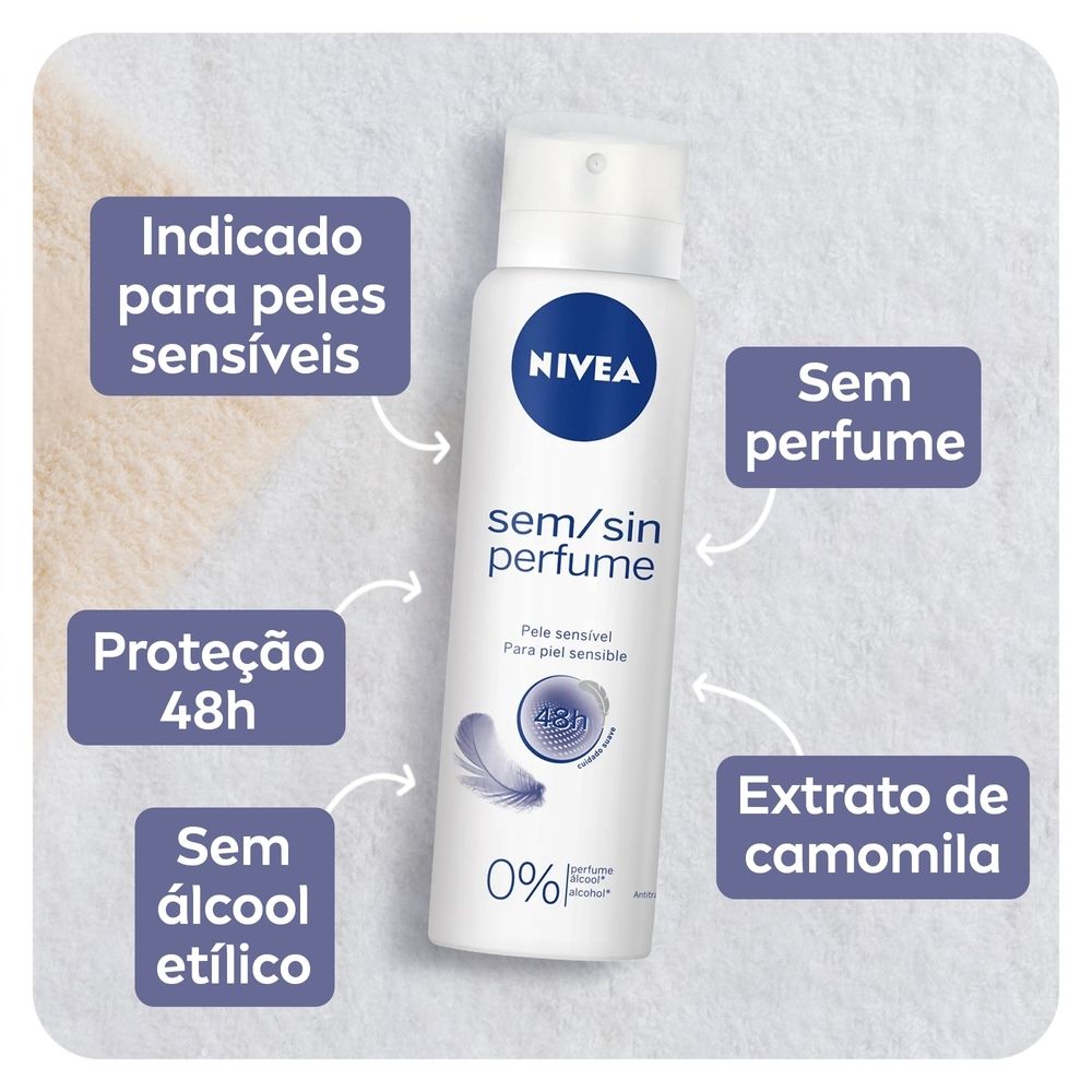- O antitranspirante NIVEA Aerosol Sensitive e Pure foi especialmente desenvolvido para peles sensíveis. - Oferece 48 horas de proteção.