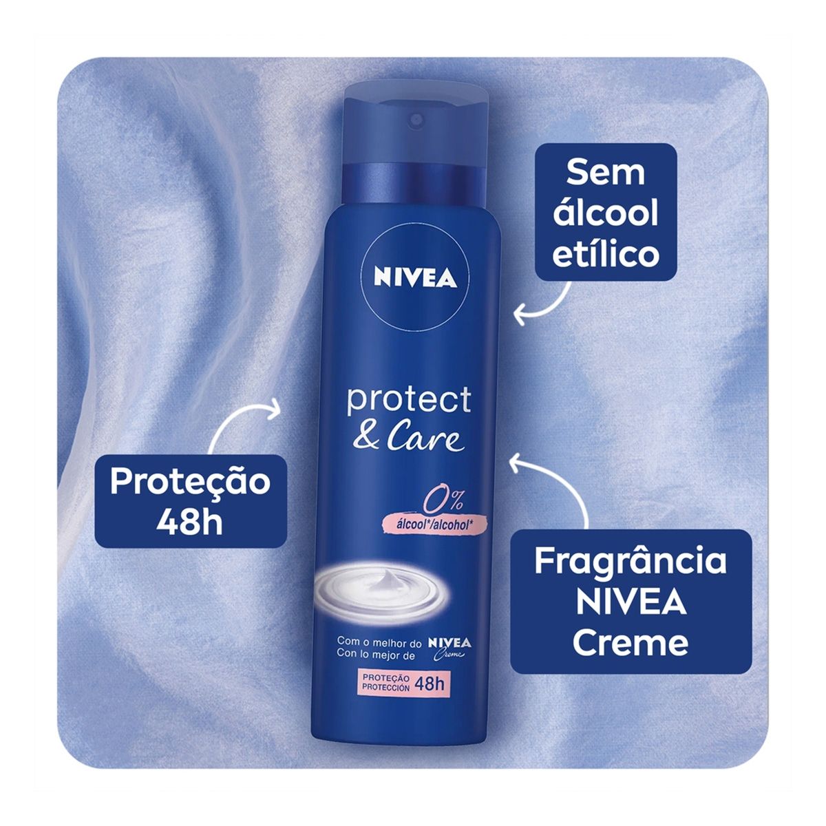 Descubra o Desodorante Aerossol Nivea Protect e Care 150ml, oferecendo 48h de proteção sem álcool e testado dermatologicamente. Com toque suave e antitranspirante eficaz, escolha o cuidado diário ideal para pele protegida e sem odores.