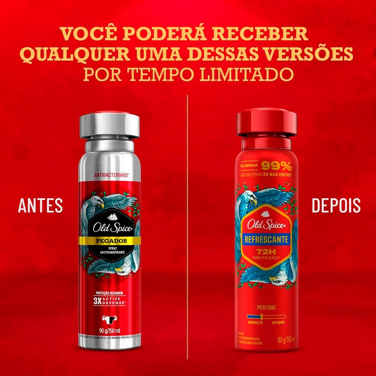 Experimente mais poder e estilo com o desodorante antitranspirante em spray Old Spice Refrescante! Sinta-se protegido contra o suor e o mau cheiro e enfrente seus desafios com mais confiança, graças à fragrância inesquecível que combina notas de sândalo e frutas vermelhas.