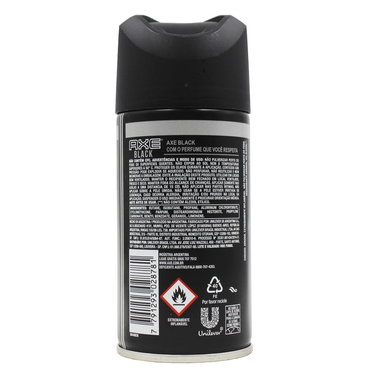 Conheça o Desodorante Antitranspirante Bodyspray Aerosol Black 150ml Axe: fragrância sutil, refrescância duradoura e proteção diária. Elegante, confiante, fácil de aplicar. Ideal para homens seguros. agite, aplique a 15 cm das axilas. Escolha o seu!