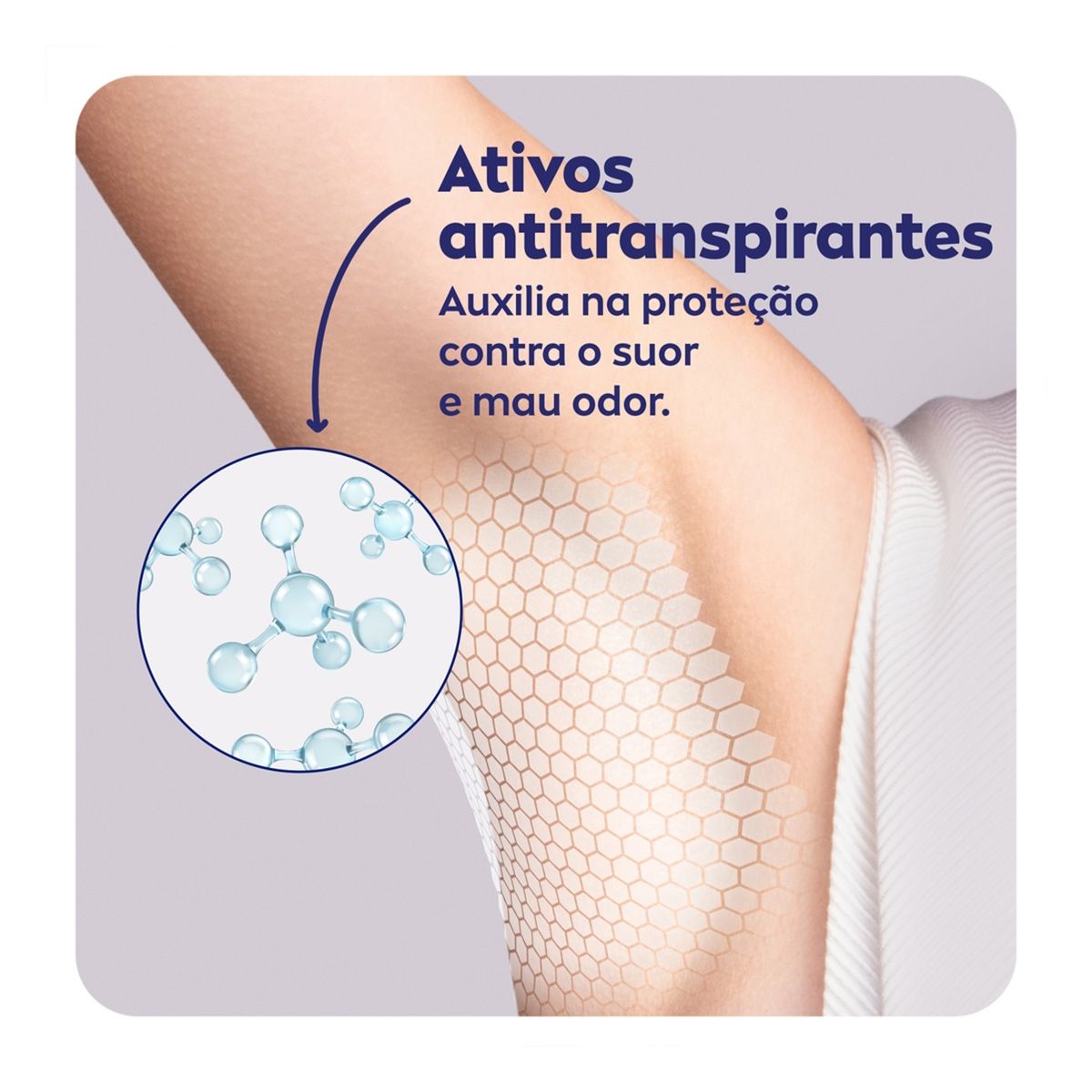 O desodorante oferece proteção antitranspirante de 48 horas e mantém a pele seca com fórmula rica em minerais. -