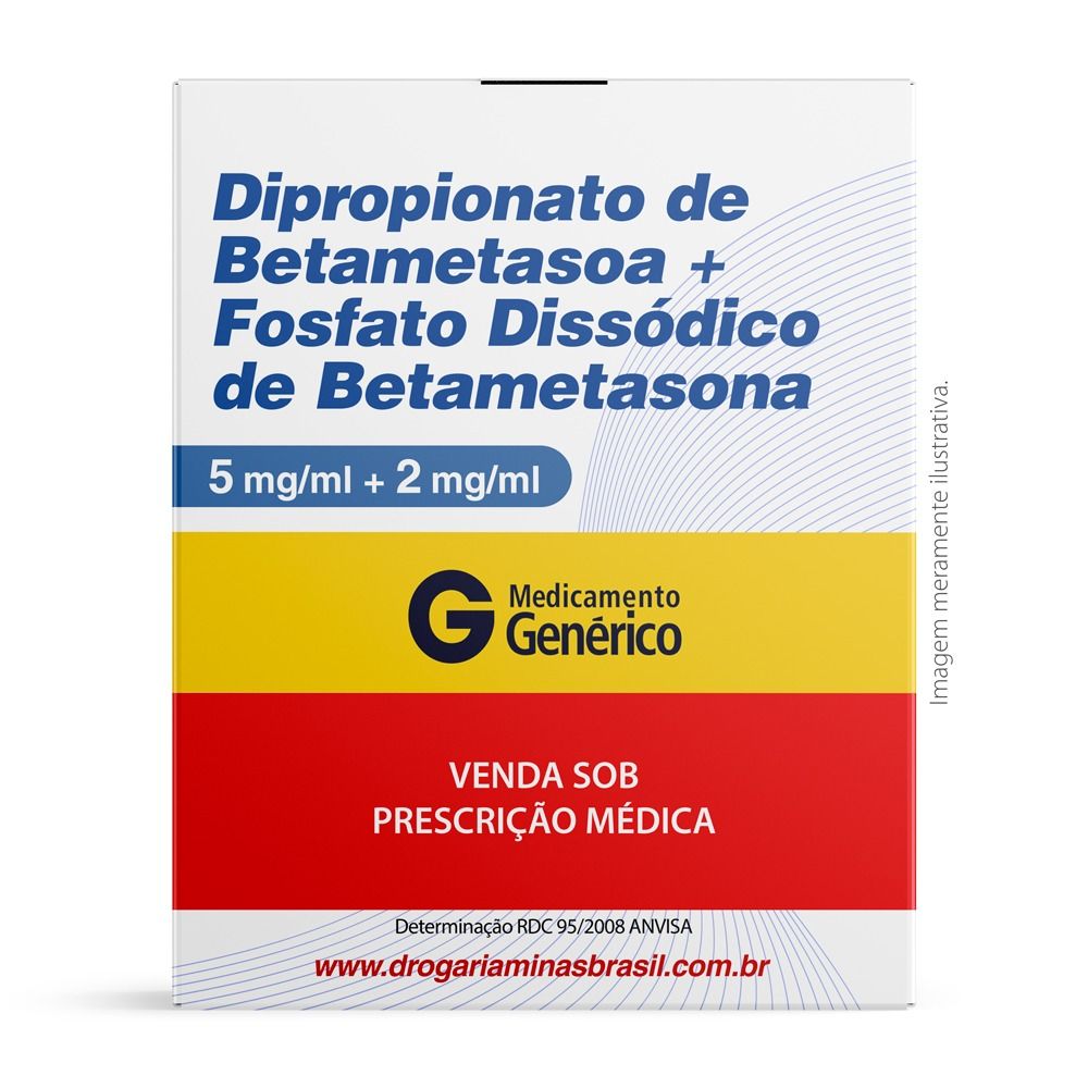 Dipropionato de Betametasona 5mg/ml + Fosfato Dissódico de Betametasona 2mg/ml Com 1 Ampola Genérico Neo Química é um medicamento. Seu uso pode trazer riscos. Procure o médico e o farmacêutico. Leia a bula.