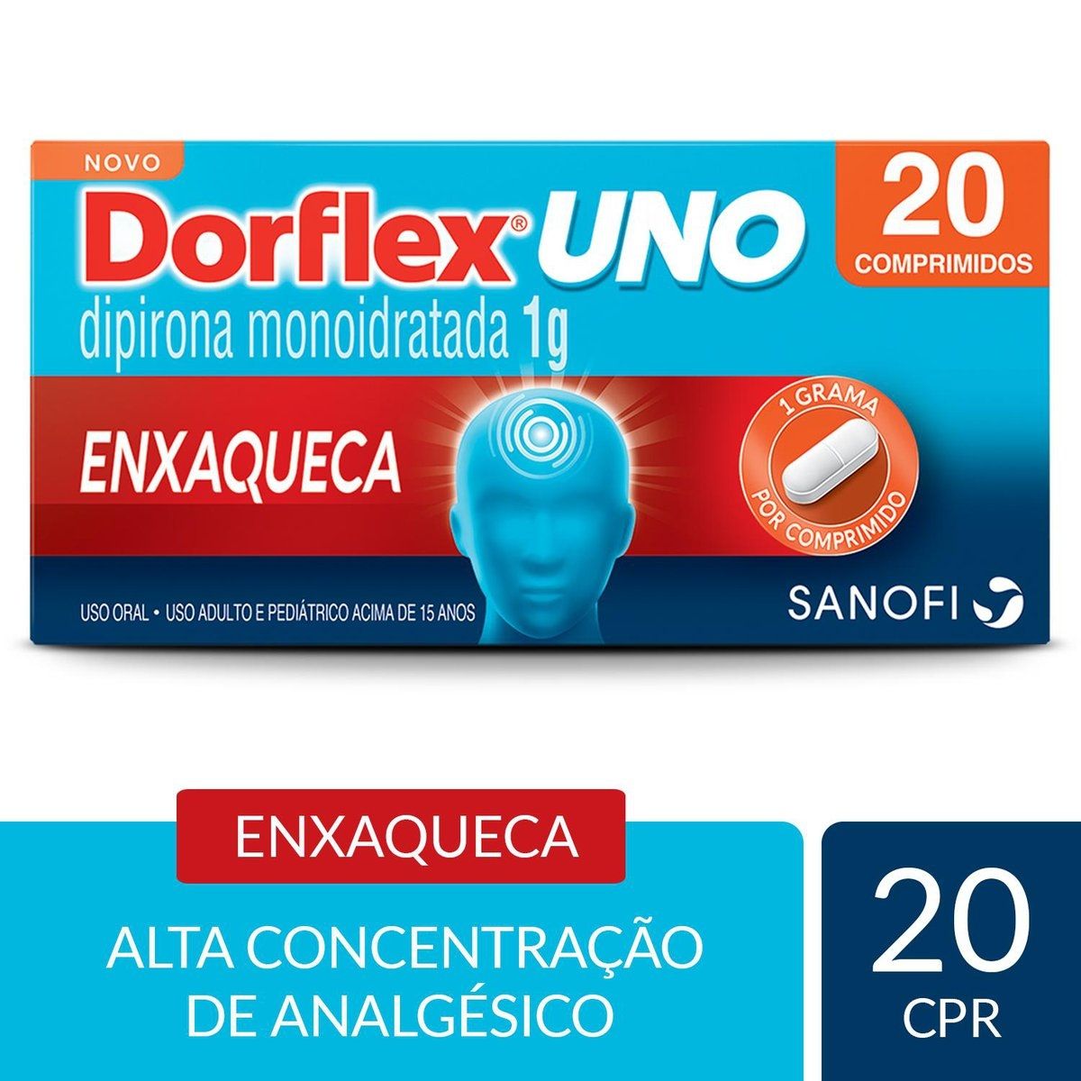 O Analgésico Dorflex Uno 1g Enxaqueca é utilizado para o tratamento de enxaquecas e dores de cabeça. O medicamento oferece alta concentração de dipirona monoidratada, que potencializa o alívio dos sintomas. Leia a bula. A embalagem contém 20 comprimidos.