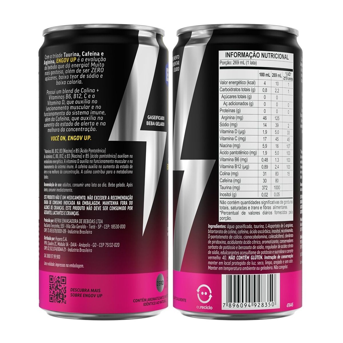 Engov UP é uma bebida gaseificada zero açúcares com baixo teor de sódio e baixo em caloria. Formulado a tríade de energia: Taurina, Cafeína e Arginina, essa bebida auxilia no metabolismo energético, aumentando a energia, concentração e o estado de alerta.