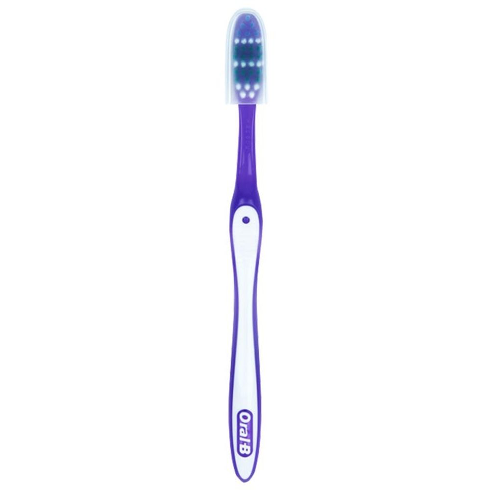 A escova oferece cerdas arredondadas para proteção das gengivas, limpeza eficiente entre dentes e um protetor higiênico. É adequada para viagens por ser leve e ter cores variadas. -