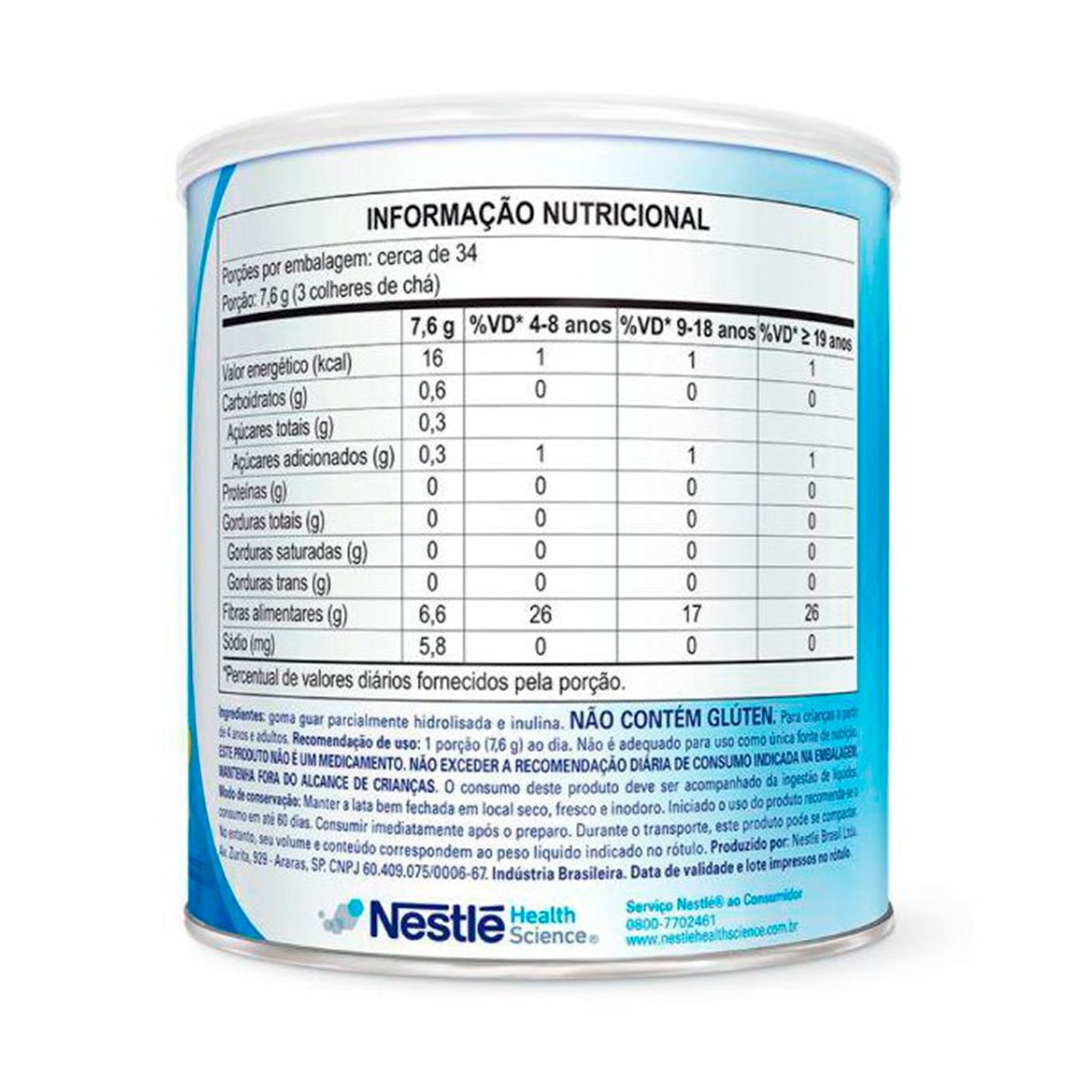 Ingredientes: Goma Guar Parcialmente Hidrolisada e Inulina.