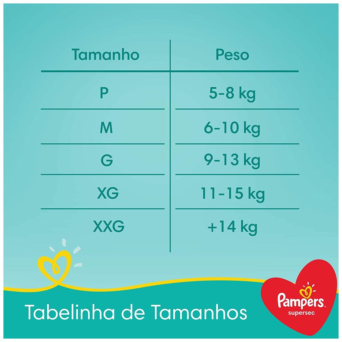 A Fralda Pampers Supersec G é ideal para bebês com mais de 14kg. Garanta o conforto e segurança do seu bebê escolhendo o tamanho correto. -