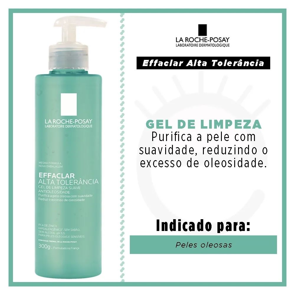 Descubra o Gel de Limpeza Facial La Roche-Posay - Effaclar Alta Tolerância. Limpa suavemente, elimina oleosidade e desobstrui poros, ideal para peles mistas e oleosas. Alta tolerância e eficácia antiacne. Escolha o produto certo para a sua pele!