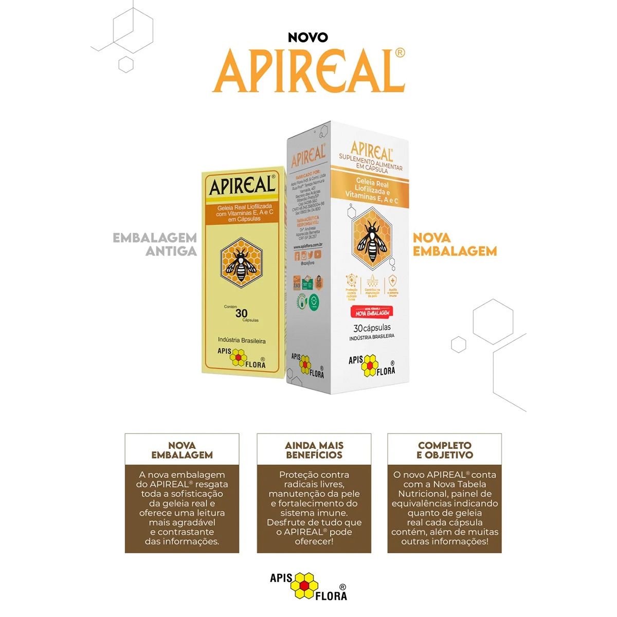 Apireal Geleia Real Liofilizada Com 30 Cápsulas Apis Flora
