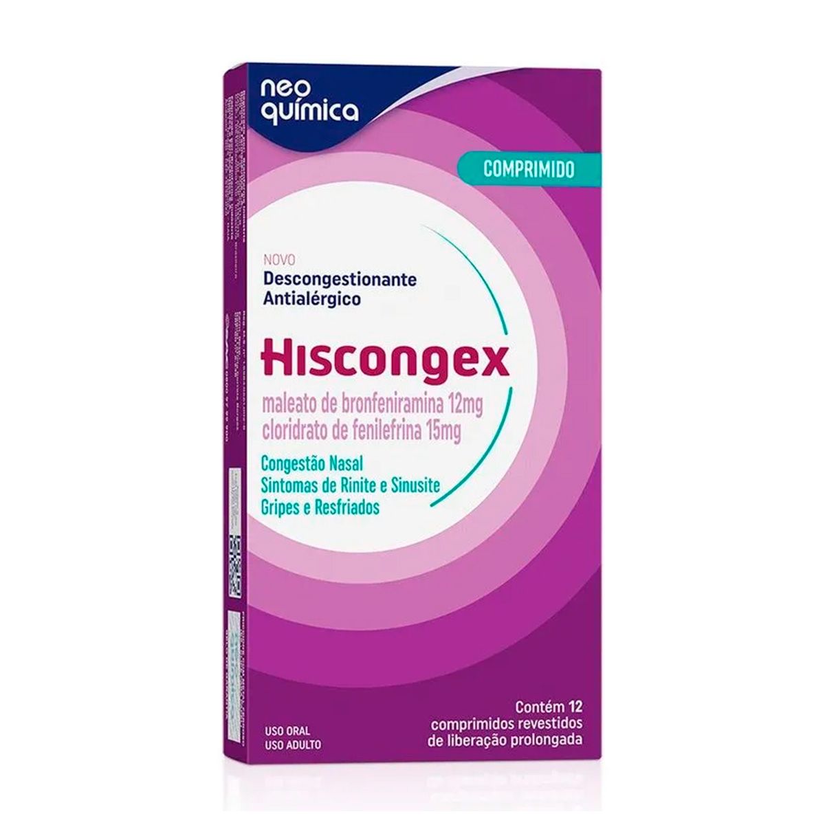 Hiscongex Maleato de Bronfeniramina 12mg e Cloridrato de Fenilefrina 15mg Com 12 Comprimidos Neo Química
