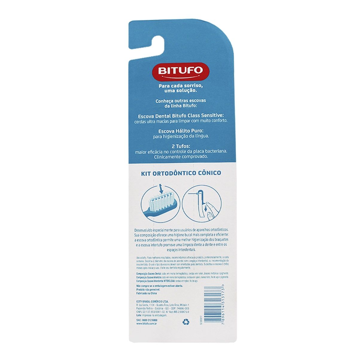 Desenvolvido especialmente para usuários de aparelhos ortodônticos. Sua composição oferece uma higiene bucal mais completa e eficiente: a escova ortodôntica permite uma melhor higienização dos braquetes e a escova intertufo promove uma limpeza dente a dente e entre os espaços interdentais.
