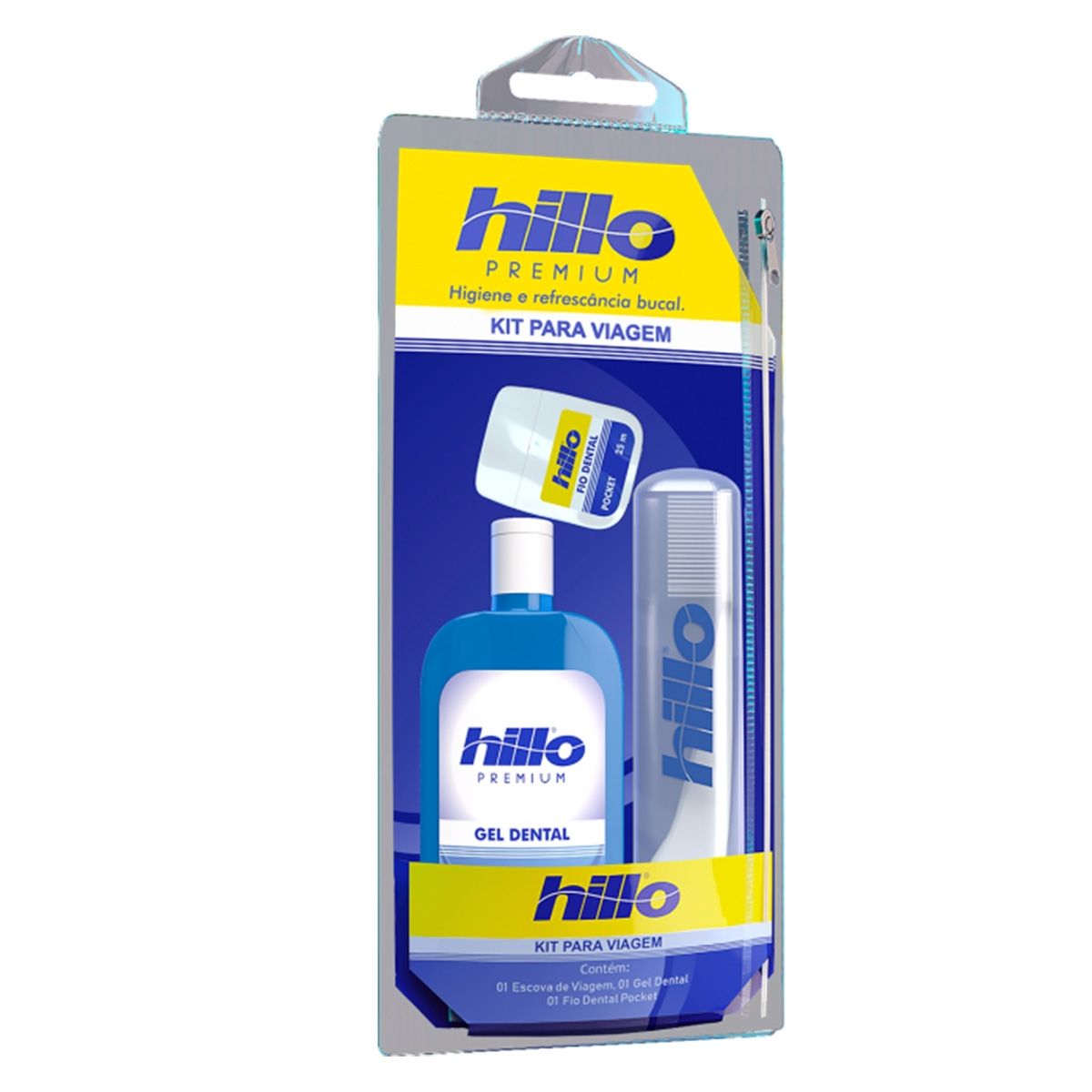 Kit Para Viagem Escova, Fio Dental 25m e Gel Dental 60g Premium Hillo