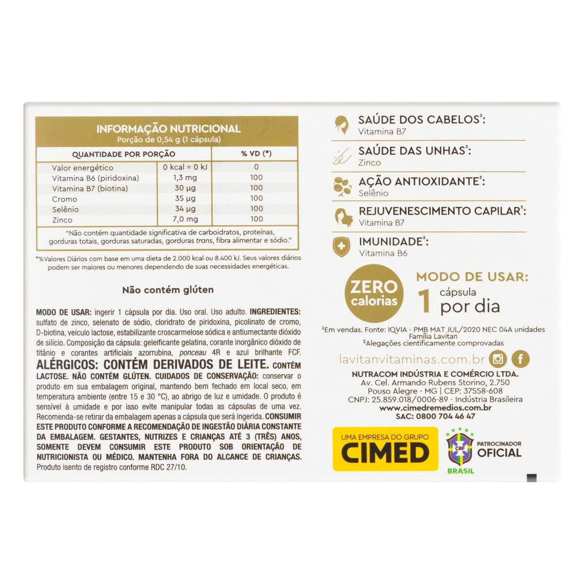 Multivitamínico Lavitan Cabelos E Unhas Com 30 Cápsulas