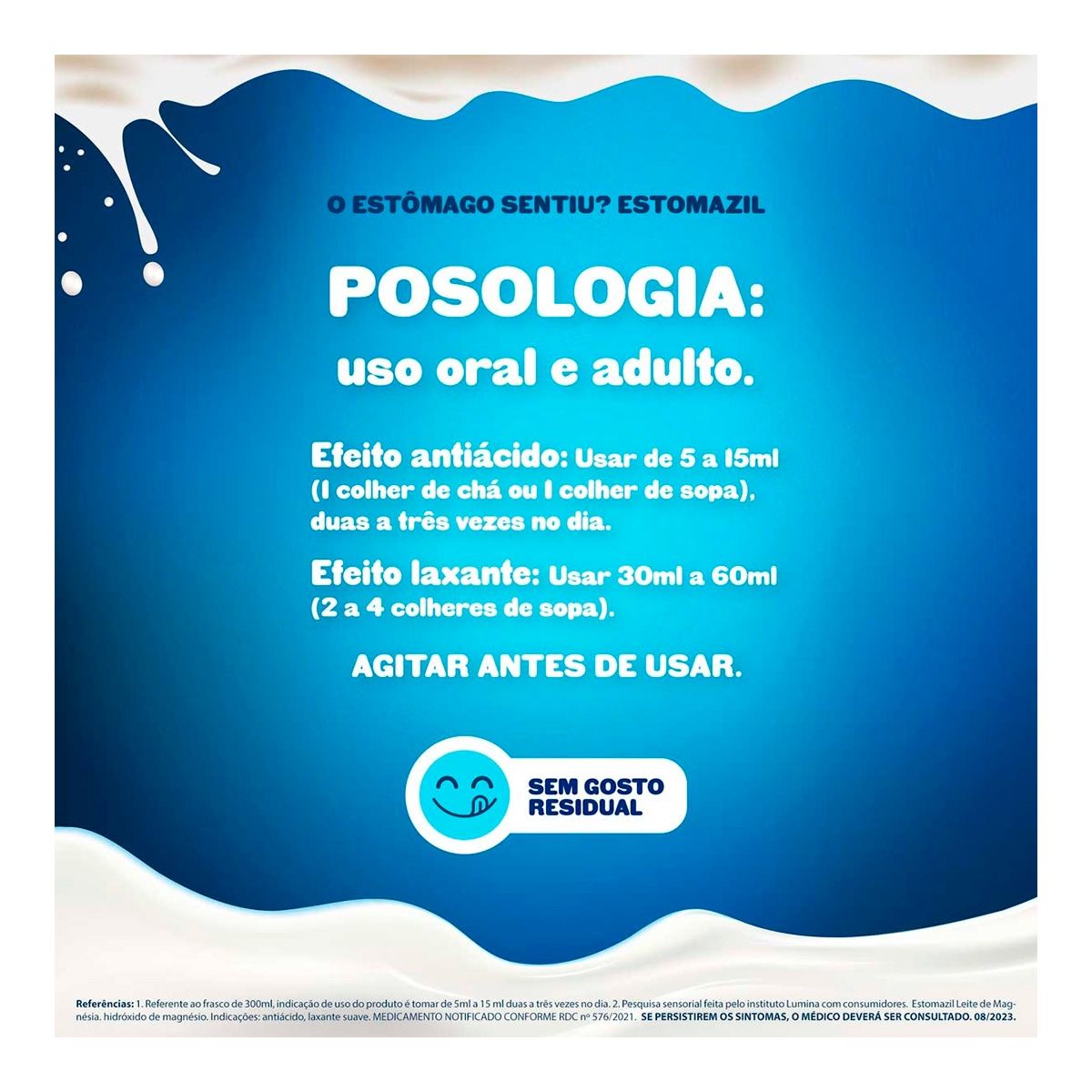 Formulado com hidróxido de magnésio 8%, o Leite de Magnésia Estomazil é um antiácido e laxante suave que contribui para o alívio da azia, queimação e má digestão.