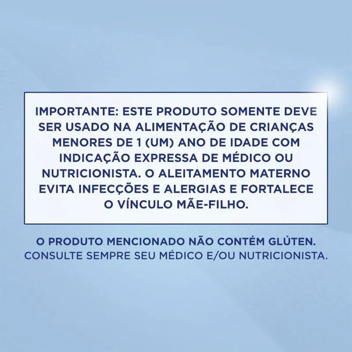 “AVISO IMPORTANTE: Este produto somente deve ser usado na alimentação de crianças menores de um ano de idade com indicação expressa de médico ou nutricionista. O aleitamento materno evita infecções e alergias e fortalece o vínculo mãe e filho.”