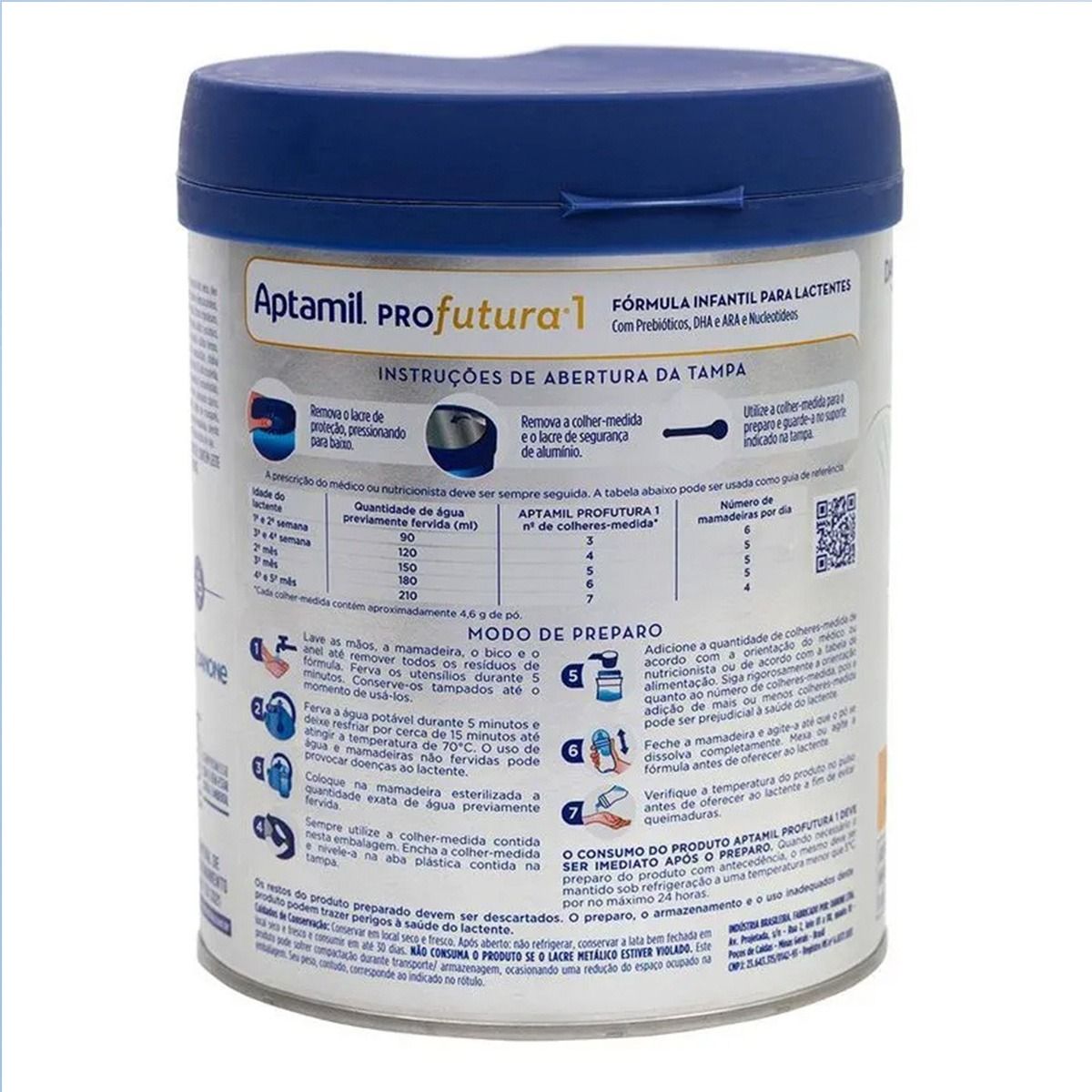 A Fórmula Infantil Aptamil Profutura 1 é indicada para bebês de 0 a 6 meses de idade. -