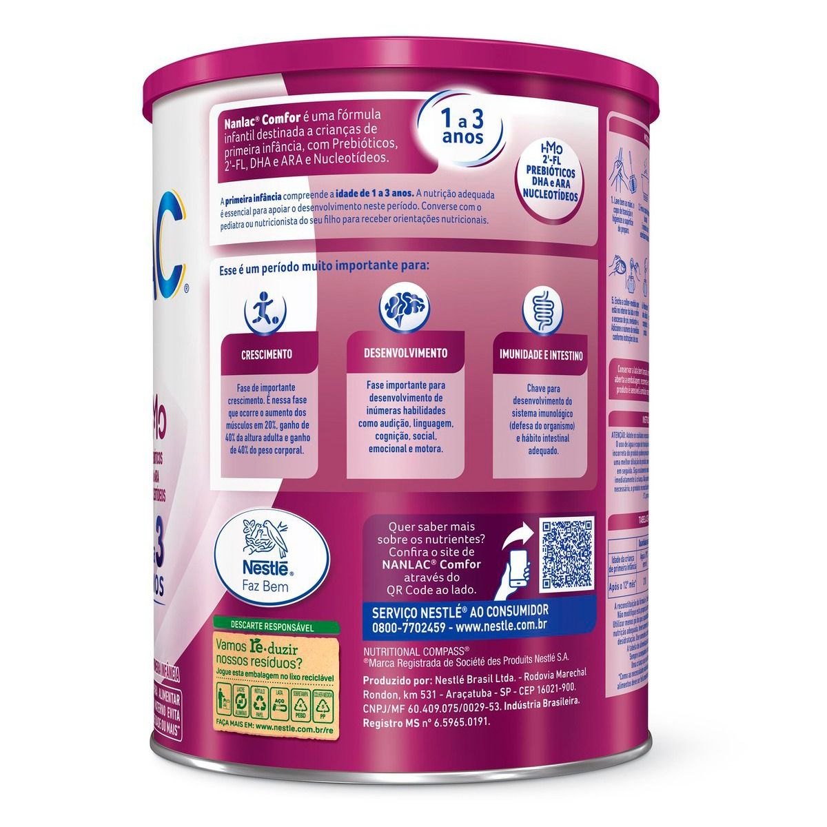 Nanlac Comfor de 1 a 3 anos. As Fórmulas infantis de Seguimento para Crianças de Primeira Infância são produtos desenvolvidos especialmente para crianças a partir de um ano de idade. As Fórmulas infantis apresentam teor especifico de proteínas, assim como a adição de vitaminas e minerais, recomendados para essa faixa etária.
