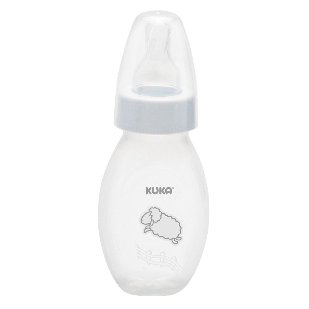 A Mamadeira Kukinha Branca 50mL da Kuka é indicada para bebês de 0 a 3 meses. -