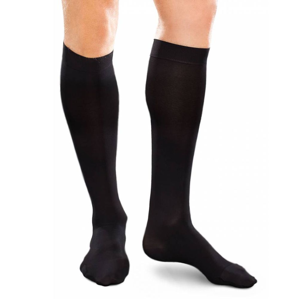 A meia oferece alta compressão de 30-40 mmHg, ideal para tratar condições como varizes e melhorar a circulação. -