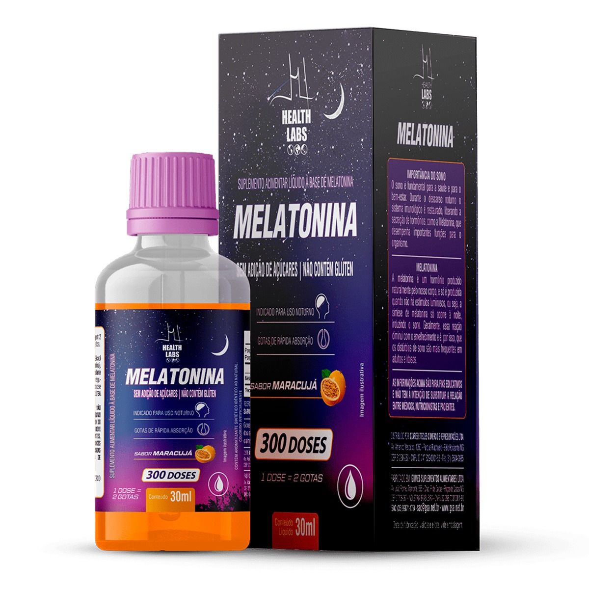 Melatonina 300 Doses Sabor Maracujá 30ml Health Labs