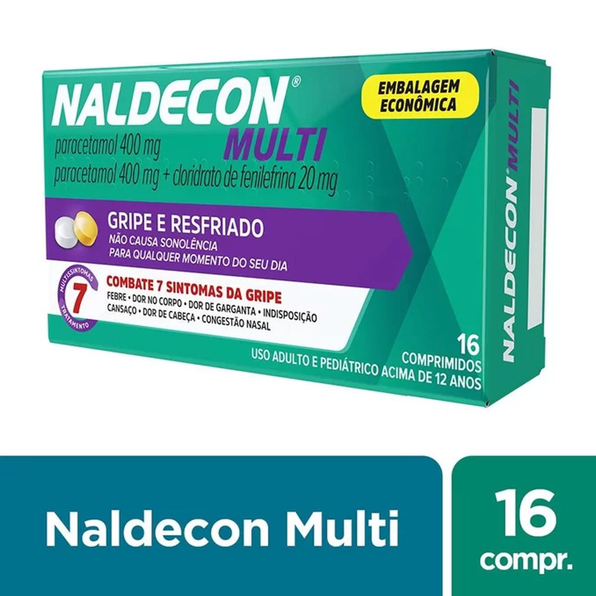 Naldecon Multi Com 16 Comprimidos é ideal contra sintomas de gripes e resfriados. Com paracetamol e fenilefrina, alivia dores, reduz febre e descongestiona. Escolha considerando sensibilidade aos ingredientes ativos e sempre leia a bula.