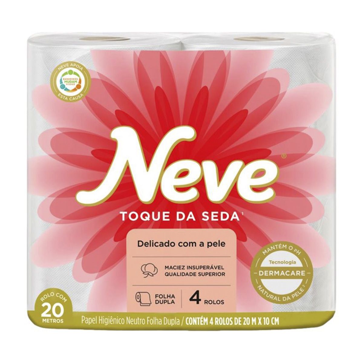 Neve Toque da Seda, oferece uma maciez insuperável e qualidade superior em folhas duplas. O papel higiêncio que é delicado com a pele. Todos os papeis higiênicos Neve® contém a tecnologia Dermacare, que mantém o PH natural da pele.