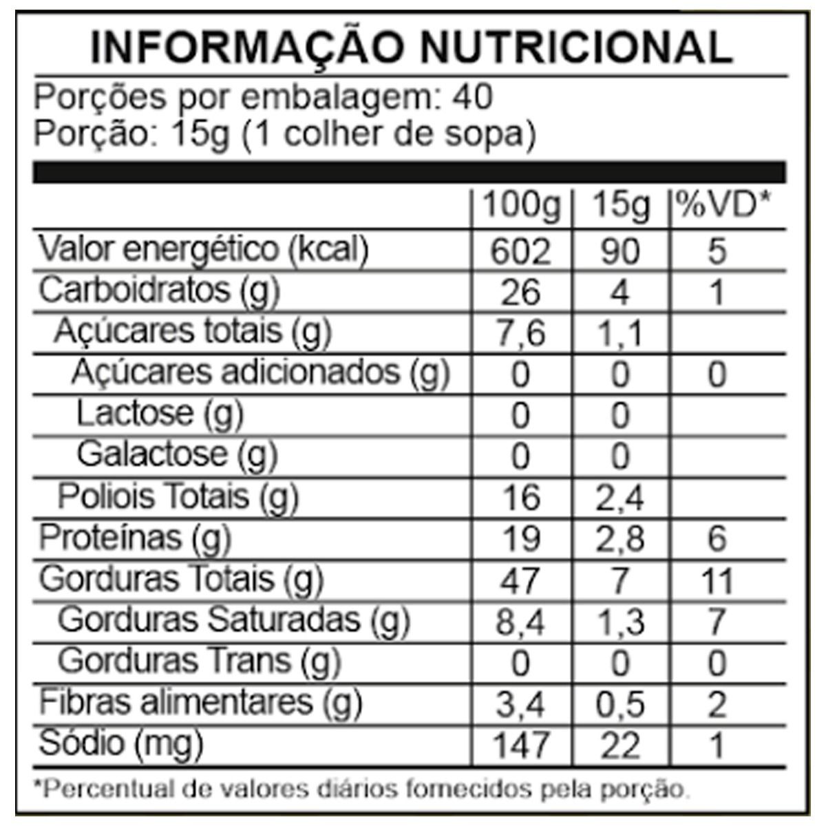 INGREDIENTES: Amendoim torrado, creme sabor pistache (maltitol, gordura de palma, leite integral em pó, soro de leite em pó, óleo vegetal, pasta de pistache, emulsificantes lecitina de soja e poliglicerol polirricinoleato, sal, aroma idêntico ao natural, corante clorofila natural), whey protein, sal, enzima lactase e edulcorantes: xilitol, sucralose e acessulfame de potássio.