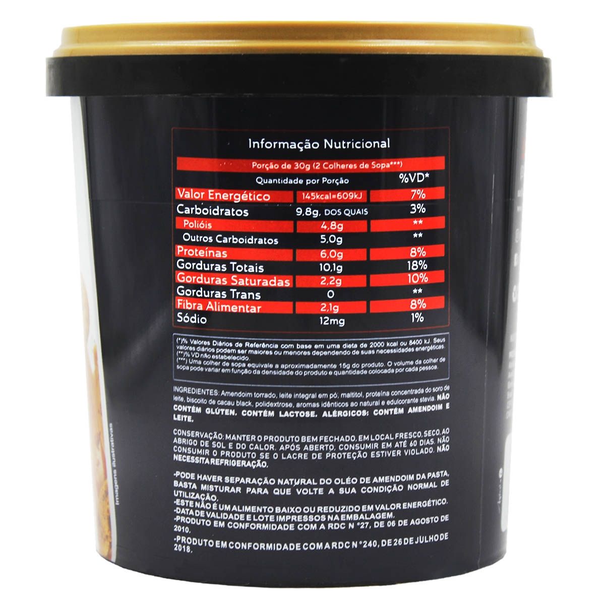 A pasta tem sabor Cookies e Cream, combinando a cremosidade da pasta de amendoim com a doçura de cookies de cacau. -