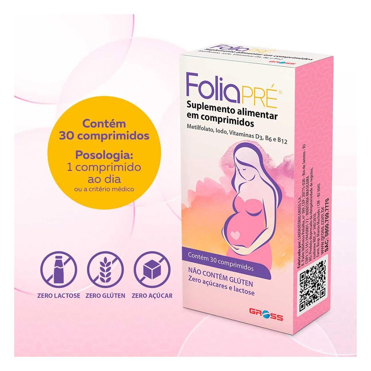 Polivitamínico FoliaPRÉ para Gestantes Com 30 Comprimidos Gross