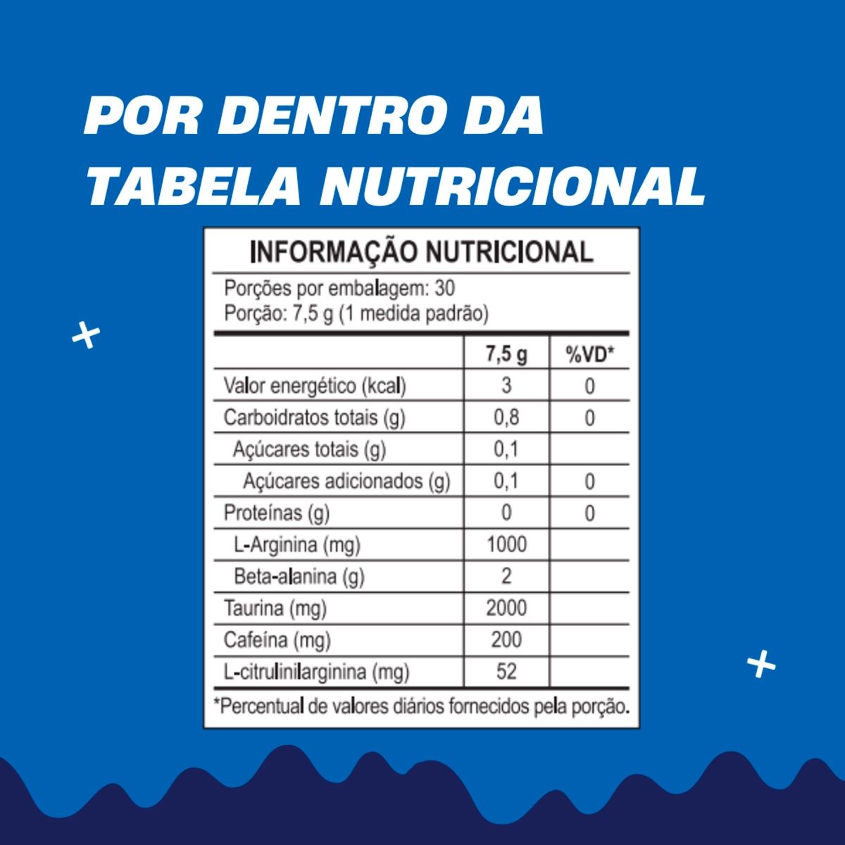 O Pré-treino Exquenta Stay Natty Green Apple contém 200mg de cafeína, 2000mg de taurina e 2g de beta-alanina para suporte energético antes das atividades físicas. -