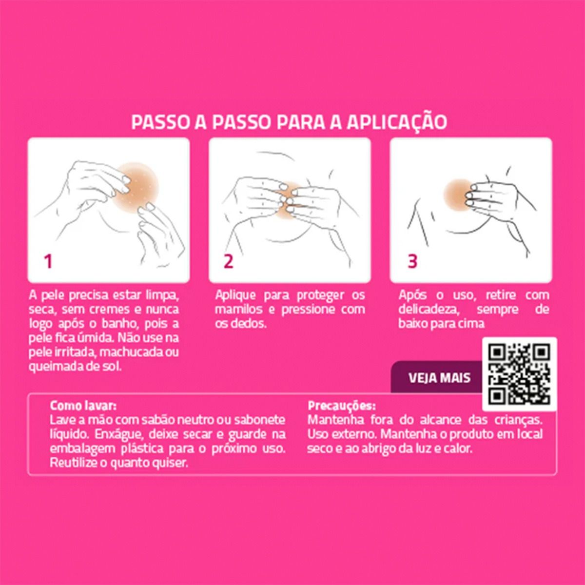 Feito em silicone reutilizável, seu uso não marca e proporciona liberdade para a mulher usar qualquer tipo de roupa, durante o dia ou à noite, em qualquer ocasião. Apesar de ser tamanho único, seu formato redondo e de cor bege se adapta a diferentes numerações de seios. Dermatologicamente testado.
