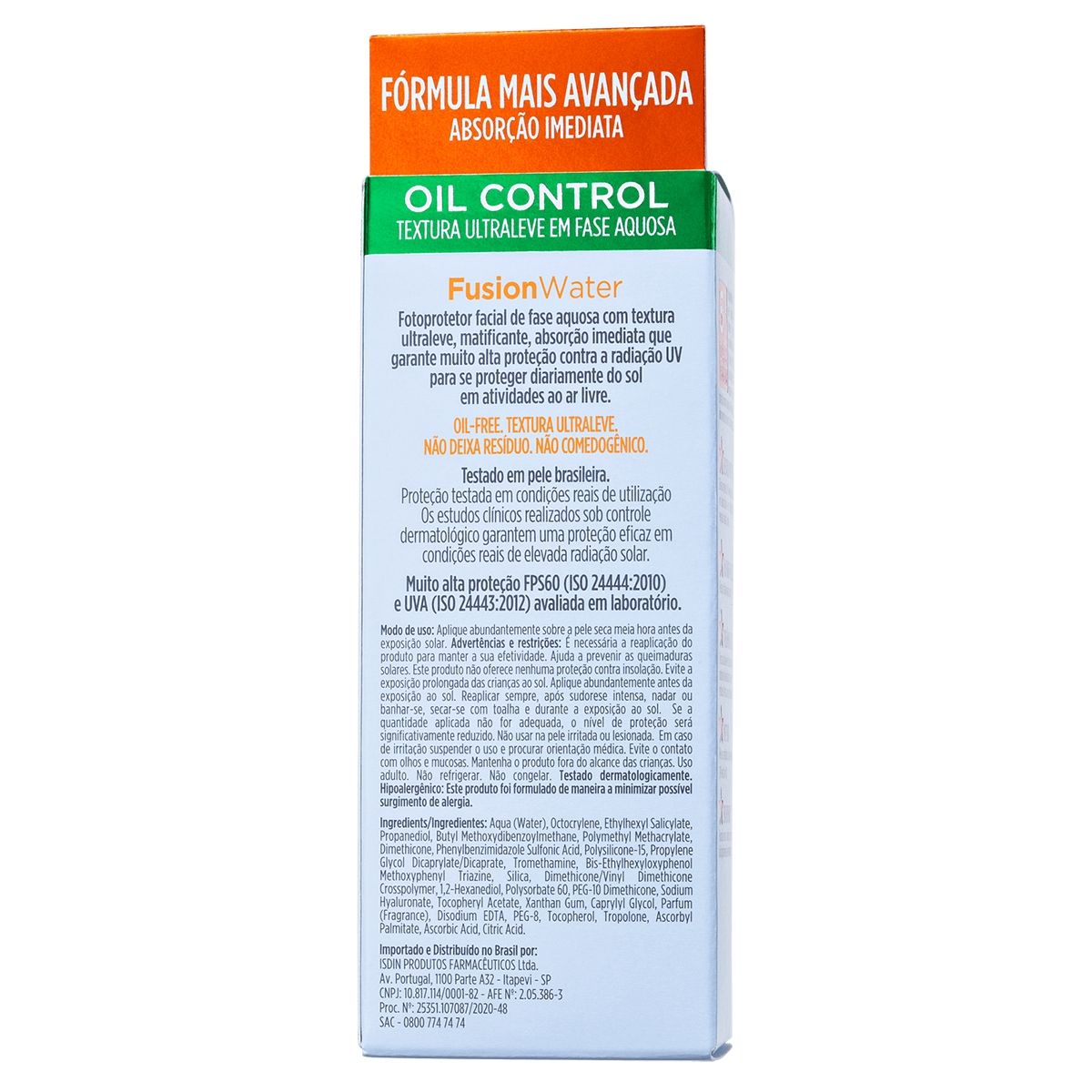O Protetor Solar Isdin Fusion Water é comedogênico?