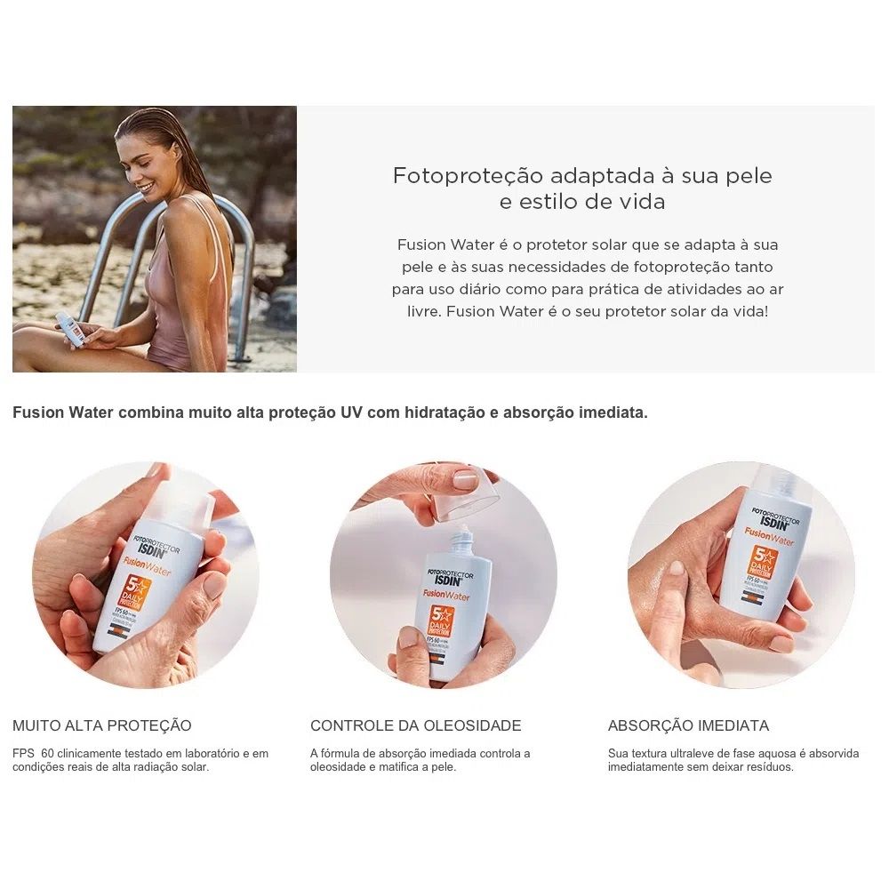 Protetor Solar Facial Fotoprotector Isdin Fusion Water Fps 60 50mL