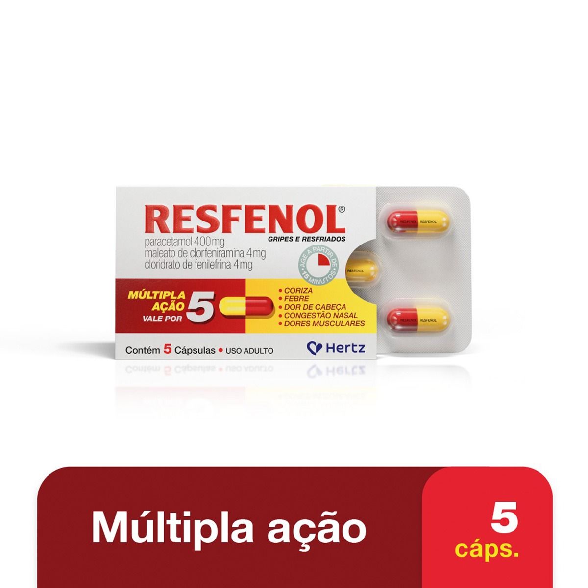 Resfenol Paracetamol 400mg + Cloridrato Fenillefrina 4mg + Maleato de Clorfeniramina 4mg 5 Cápsulas
