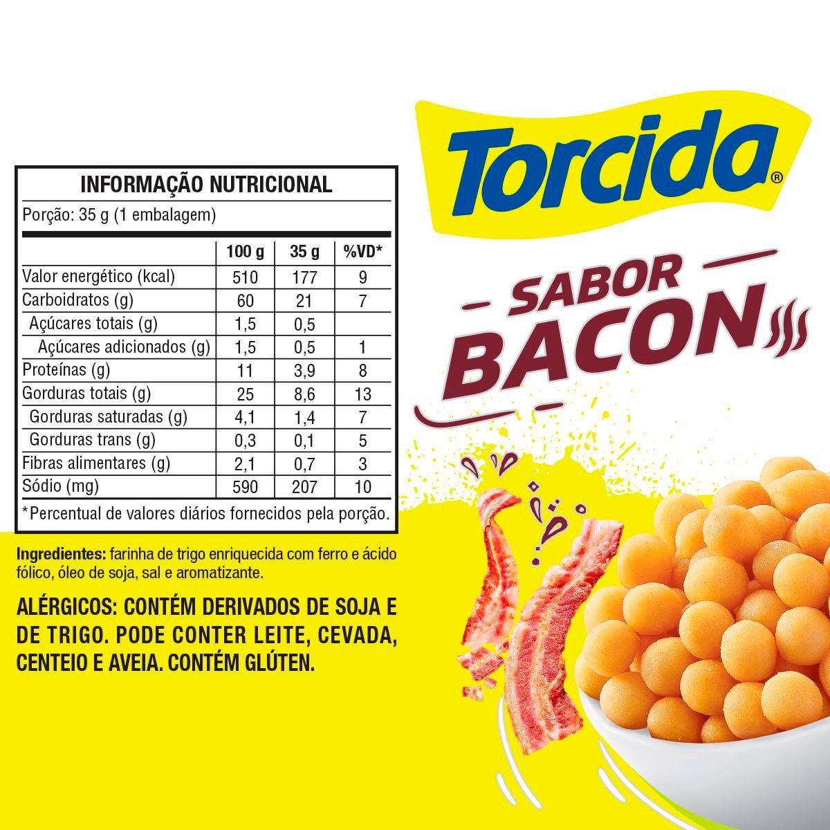 Qual é o sabor do Salgadinho Bacon Torcida 35G?