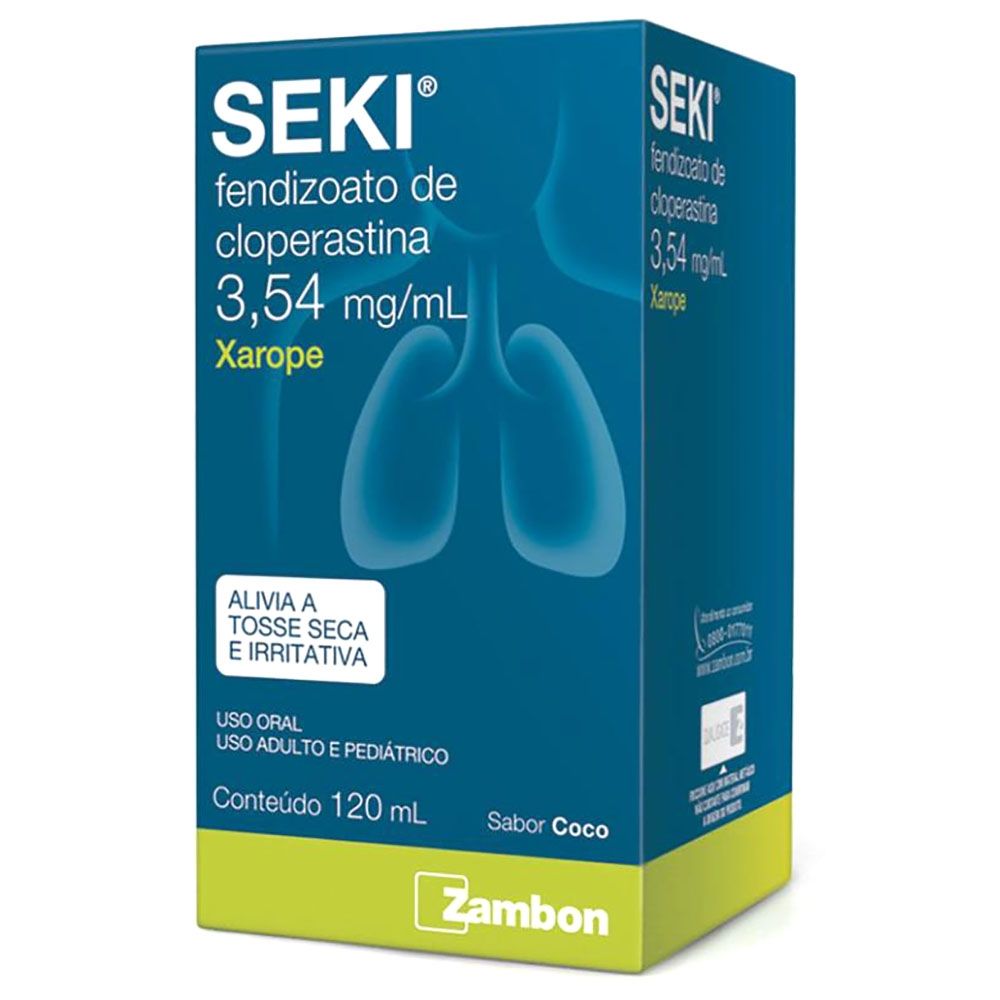 Seki® é um medicamento antitussígeno, ou seja, inibe a tosse na qual não haja a produção de secreções (catarro). A ação de Seki® inicia-se, em média, 30 minutos após a sua administração.