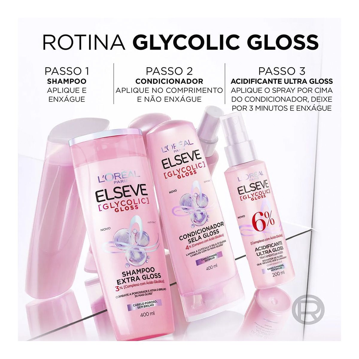 A linha Elseve Glycolic Gloss de L’Oréal Paris garante 3X mais gloss que resiste a 6 lavagens. Sua fórmula com pH Ácido rica em Ácido Glicólico, combate a porosidade e sela as cutículas para um cabelo visivelmente saudável e alinhado para um brilho gloss.