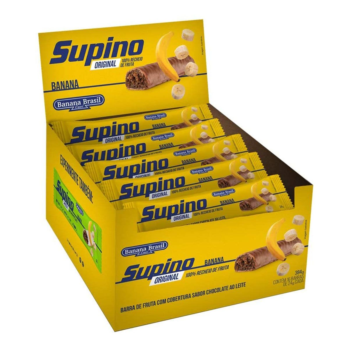 Descubra a Barra de Fruta Supino Original Banana ao Leite 24g, um lanche perfeito da Banana Brasil! Nutritiva, prática e saborosa, com banana desidratada, chocolate, rica em potássio, fibras e vitamina B. Ideal para uma dieta equilibrada!